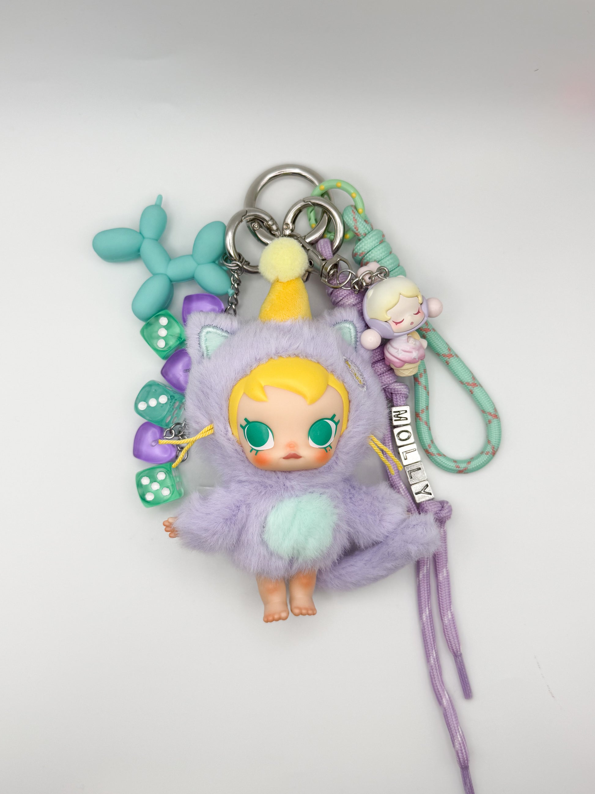 Genuine Popmart figurine, transformed into a fun, one-of-a-kind bag charm - complete with original packaging and accessories!